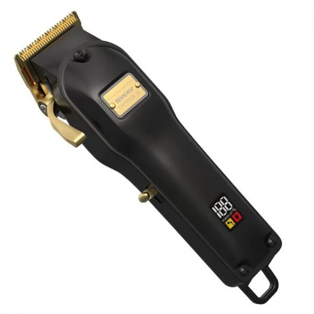 Аккумуляторная машинка Sway Dipper S Black And Gold Edition – это революционная новинка в сфере парикмахерского искусства! Теперь каждый мастер сможет почувствовать себя действительно профессионалом своего дела, обладая уникальным инструментом Sway. Плавность линий и несравненное качество материалов, непревзойденная точность работы и выносливость – это Sway Dipper S Black And Gold Edition. Машинка для стрижки – Основной инструмент каждого парикмахера и барбера, благодаря которому создаются уникальные стрижки, олицетворяются неповторимые образы, подбирается особый стиль каждого клиента. Наша новая, беспрецедентная машинка навсегда изменит ваше представление о качественных и точных инструментах для стрижки. Совершенно все в этой модели, от двигателя до дизайна, было четко продумано и создано руками наших высококвалифицированных специалистов. Только продолжительная и кропотливая работа смогла дать такой качественный и комфортный в работе инструмент. Машинка Sway Dipper S Black And Gold Edition имеет огромный ряд преимуществ, и вот некоторые из них: