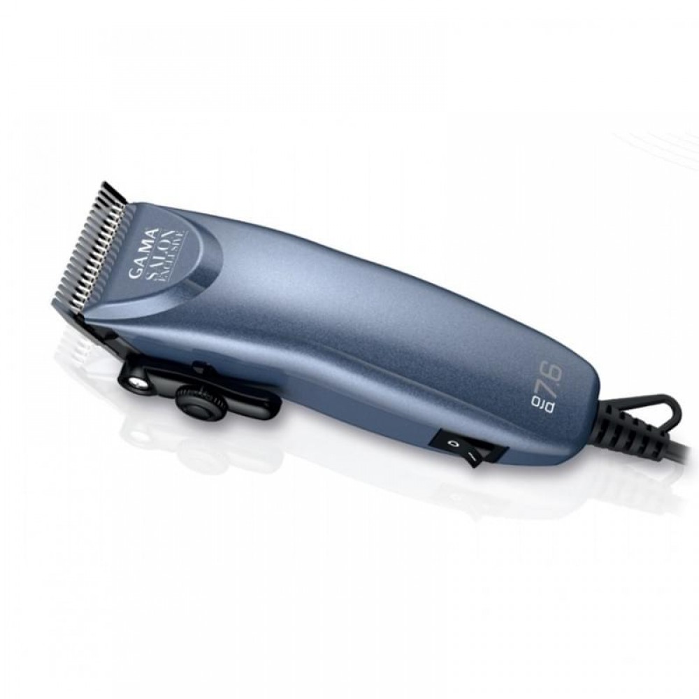 Машинка GAMA PRO 7.6 – это новинка в линейке машинок GAMA. Аккуратный эргономичный корпус и легкий вес обеспечат Вам комфортную работу. Особенностью модели является ножевой блок из ультраострых лезвий, выполненных из нержавеющей стали. Ширина ножа составляет 40 мм, а минимальная высота среза – 0.8 мм.