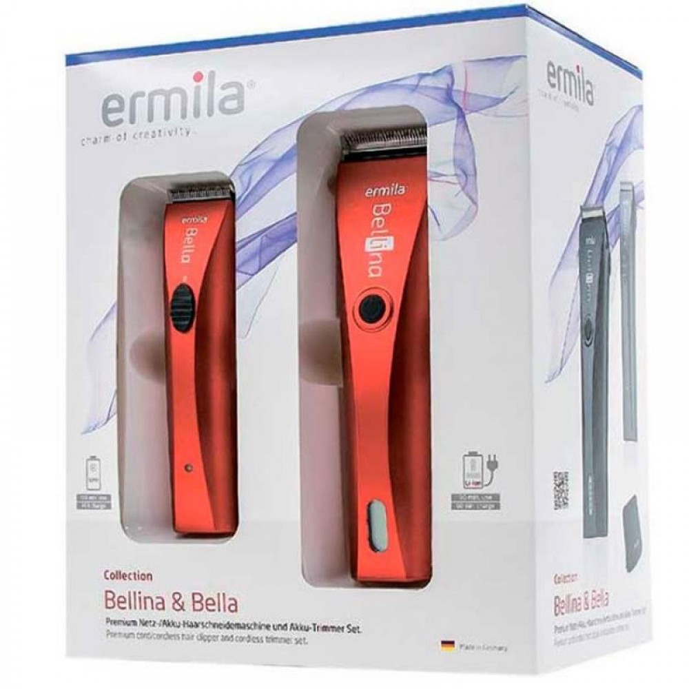 Набор машинок Bellina & Bella Combo (1870-0028) это замечательный тандем для настоящего профессионала. Набор состоит из машинки для стрижки Ermila Bellina и окантовочного триммера Ermila Bella. Обе машинки имеют комбинированное питание и их можно использовать как от сети, так и без шнура. Модели имеют массу достоинств, о которых написано ниже.