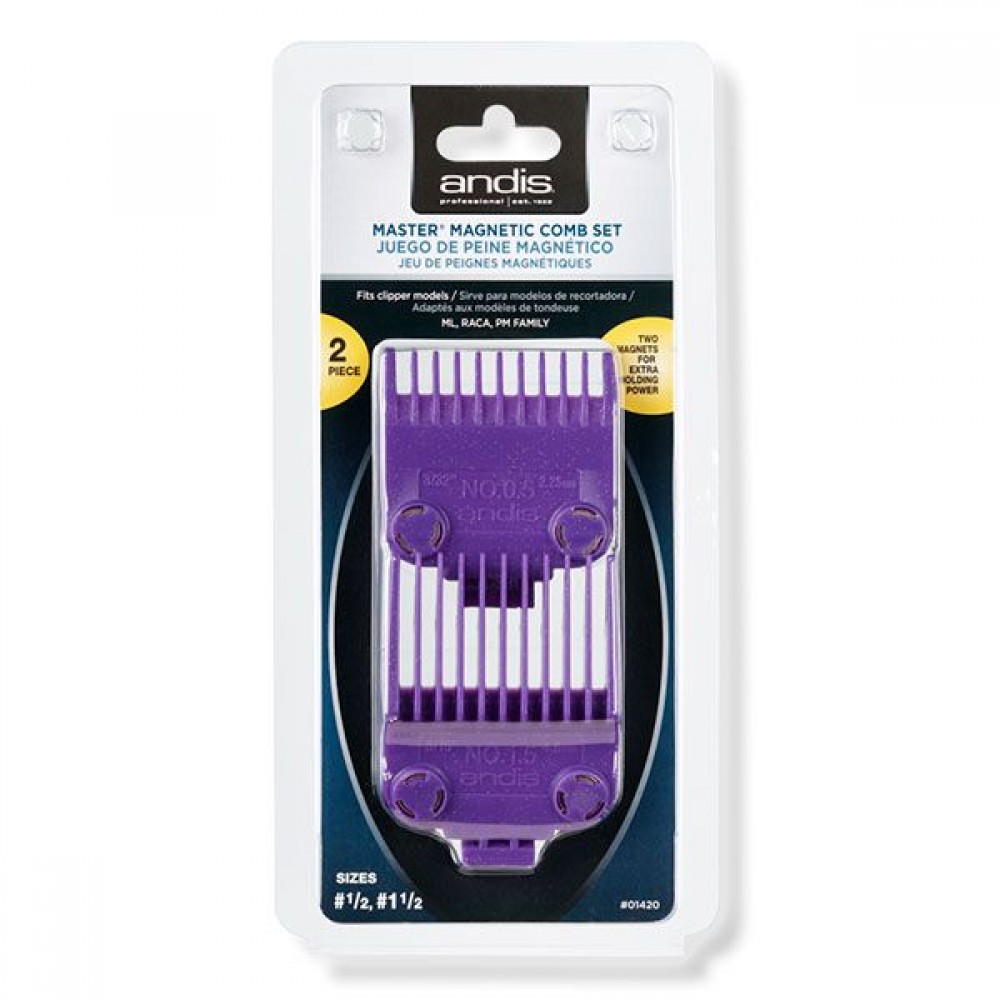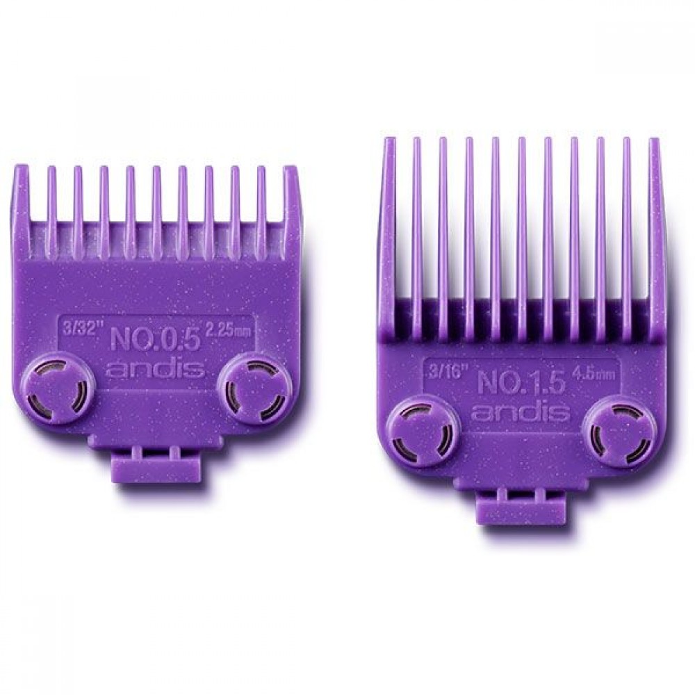 Комплект насадок легко устанавливается на ножевые блоки машинок торговой марки Andis. Магнитная основа, имеет двойную систему магнитов и гарантированно удержится на ноже. Изготовлены насадки из ударопрочного, термостойкого пластика. Плотно и надежно садятся на ножевой блок.