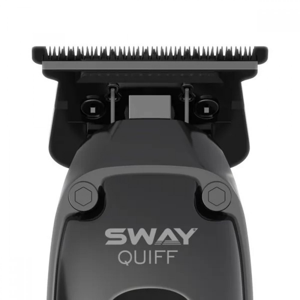 Триммер для стрижки один из наиболее важных инструментов в работе каждого мастера парикмахера и барбера. Профессиональный инструмент это залог предсказуемо качественной работы и длительного срока эксплуатации. Следуя нога в ногу с новейшими тенденциями парикмахерского искусства, наша торговая марка подготовила для вас беспрецедентную новинку – аккумуляторный триммер Sway Quiff. Современный дизайн, ударопрочный корпус, мягкая работа, емкий аккумулятор и универсальный тип питания – основные преимущества данной модели. Сдержанный дизайн и строгий черный цвет позволят этому триммеру вписаться под любую стилистику салона. Не малую роль играет комфорт для мастера во время работы и здесь триммеру практически нет равных. Наибольшим преимуществом данной модели стал емкий аккумулятор, с возможностью беспрерывной работы в течение 240 минут. Также, особого внимания заслуживает Т-образный ножевой блок, при помощи которого одним махом отсекается большая часть волос нежели с классическими узкими ножевыми блоками. С таким ножом вполне легко делать hair-тату, выводить ровные линии, делать четкую окантовку. В комплекте с триммером мастер получает набор сменных пластиковых насадок с наиболее популярной высотой среза 1,5 мм, 3 мм, и 6 мм. С их помощью не составит труда сделать наиболее плавный переход при стрижке бороды. Рынок парикмахерского искусства уже давно бредит идеей так называемого «оголенного» ножа на триммерах, и Sway Quiff полностью соответствует новым ожиданиям. В чем же заключается удобство такого ножевого блока?