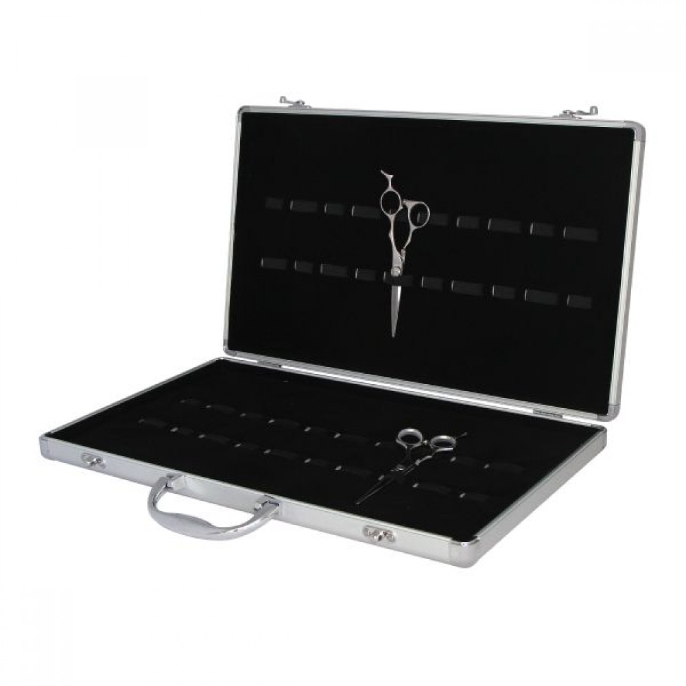 Кейс Sway предназначен для хранения и безопасной транспортировки 20-ти ножниц любого типа, размером до 9 дюймов. Изготовлен чемодан из прочного и легкого металла - алюминий, с одной стороны имеются резиновые подножки, которые обеспечивают надежное сцепление аксессуара с поверхностью, за счет этого кейс не соскальзывает и не падает. Для большей надежности аксессуар имеет два надежно закрывающихся металлических замка. Насыщено черное внутренние велюровое покрытие предотвращает появление царапин и других повреждений на ножницах. Фиксируются инструменты с помощью надежной резинки. Профессиональный металлический кейс для хранения ножниц Sway станет надежным помощником в вашей работе!