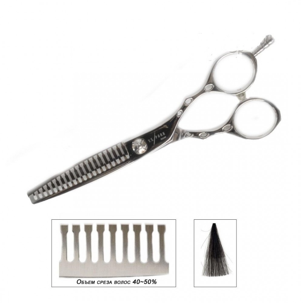 Прямая режущая головка призмовидной формы, модели YS-AT20 (6.0 inch), дает более высокий процент среза (40-50%), более точный срез в сравнении со скошенной режущей головкой. Прямая заточка режущей головки у модели YS-AT20 (6.0 inch), позволяет волосу не «соскальзывать» при срезе и дает высокий процент среза (40-50%). При работе моделью YS-AT20 (6.0 inch) линию среза видно четко. Зубья имеют призмовидную форму – ширина режущей кромки зубца шире его основания, что позволяет улучшить характеристики среза и оставшиеся волосы профилированной пряди мягко выходят из совмещенных полотен. Перекручивая упор для мизинца, переворачивая полотно, вы достигаете двойного эффекта проработки пряди. Идеальный инструмент для профессионалов.