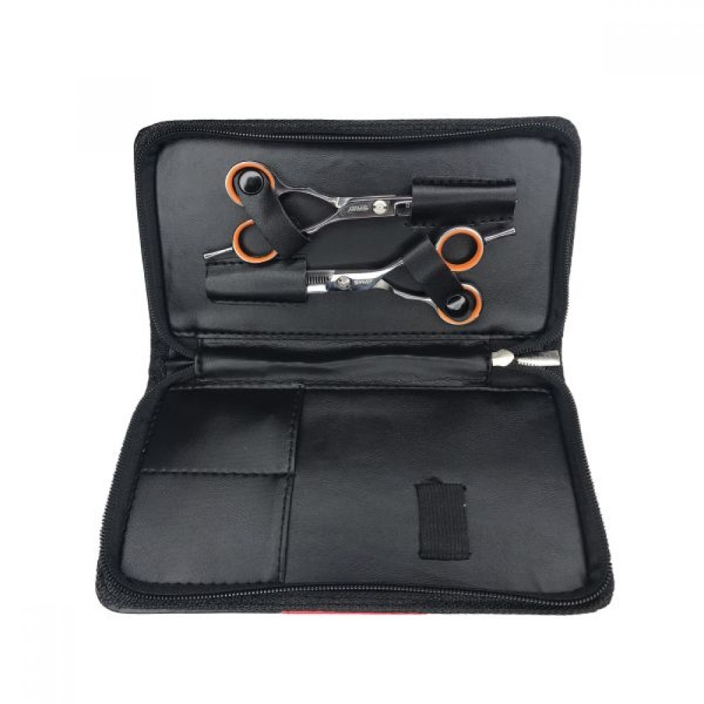Данный сет это отличный старт для новичка, так как соответствует всем базовым требованиям по качеству стали, заточки и среза. Небольшим приятным бонусом данного набора является фирменный чехол Sway из эко-кожи. Такой стильный аксессуар является отличным «хранилищем» для инструментов и помимо ножниц способен вместить несколько небольших гребней, масло и салфетку. Жесткие стенки чехла уберегут ножницы от ударов и попадания всевозможных едких жидкостей.