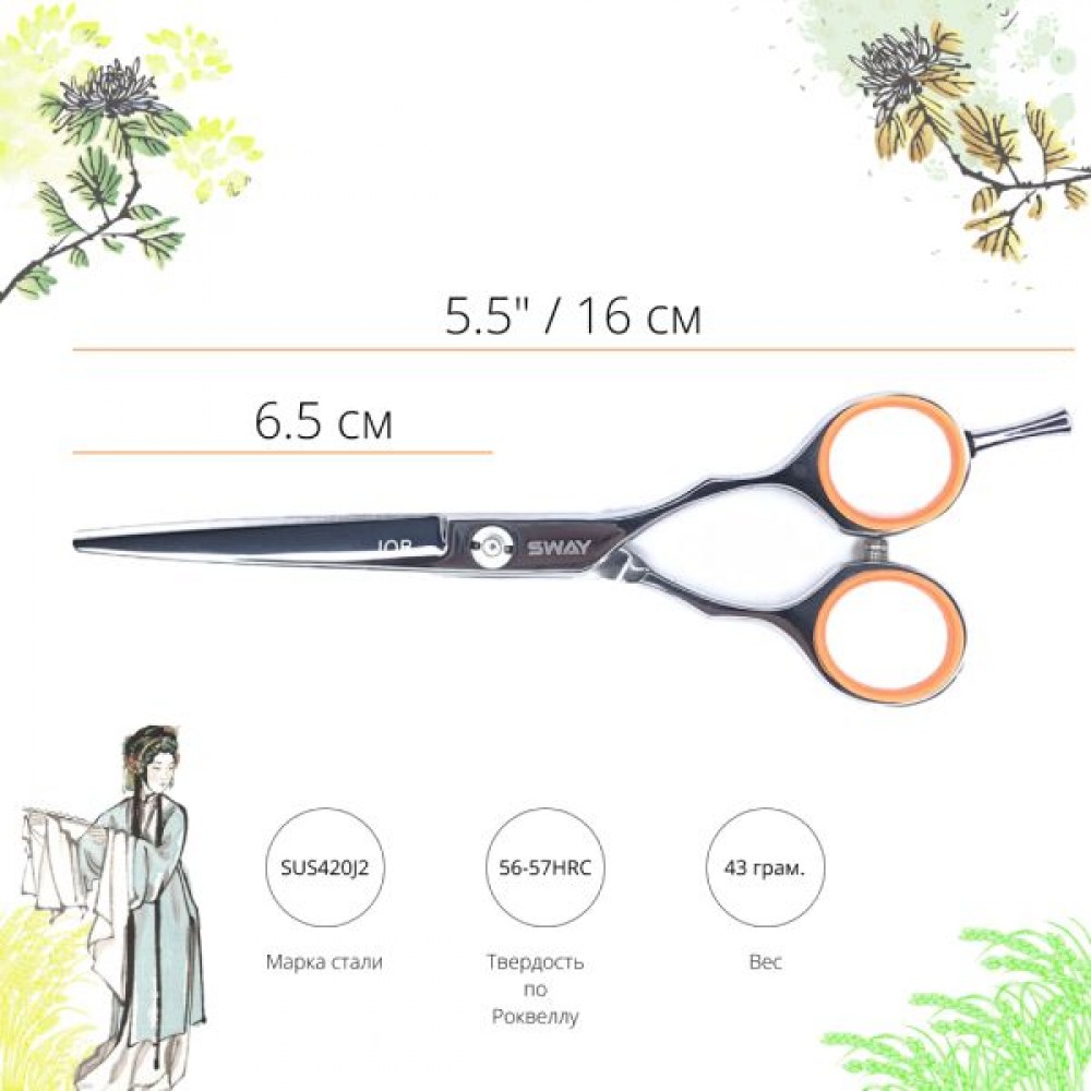 Профессиональные парикмахерские ножницы серии Sway Job представлены в наборе Limited Edition. Набор включает в себя эргономичные модели прямых и филировочных ножниц с идентичной рукояткой. Мастер, выбирая для себя ножницы с одинаковым положением колец, может быть уверен в том, что каждая его стрижка будет проходить комфортно и качественно. Все это достигается благодаря привычному положению кисти во время работы, а так же дает возможность исключить переутомление руки и предплечья.
