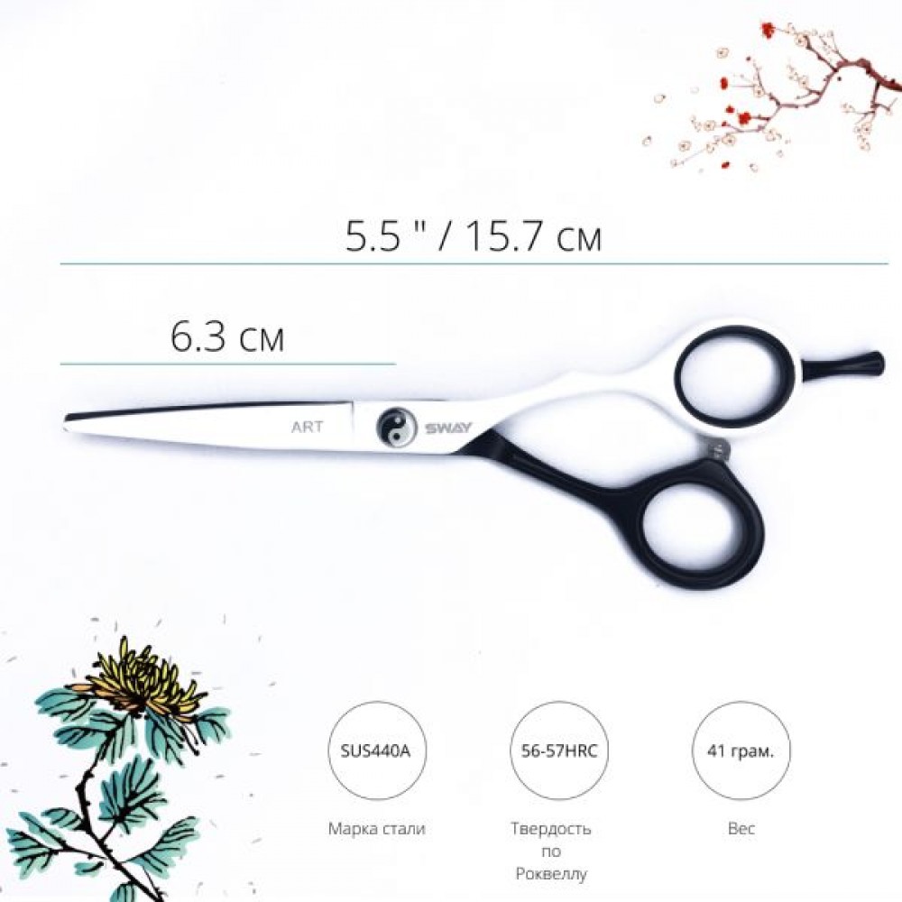 Ножницы серии ART от торговой марки SWAY созданы для харизматичных и творческих людей! Непревзойденное качество японской стали и современное высокотехнологичное покрытие из тефлона придают ножницам индивидуальный, неповторимый стиль. Если Вы хотите выделяться не только своим мастерством, но и оригинальным инструментом – ножницы SWAY ART то, что Вам необходимо! Благодаря инновационной заточке, эргономичным кольцам и настраиваемой винтовой группе Вы приобретаете не только оригинальный и яркий дизайн, но и плавный, точный срез для любой техники стрижки! Широкий ассортимент, индивидуальный дизайн и превосходное качество обратят на себя внимание даже самых изысканных и требовательных стилистов.