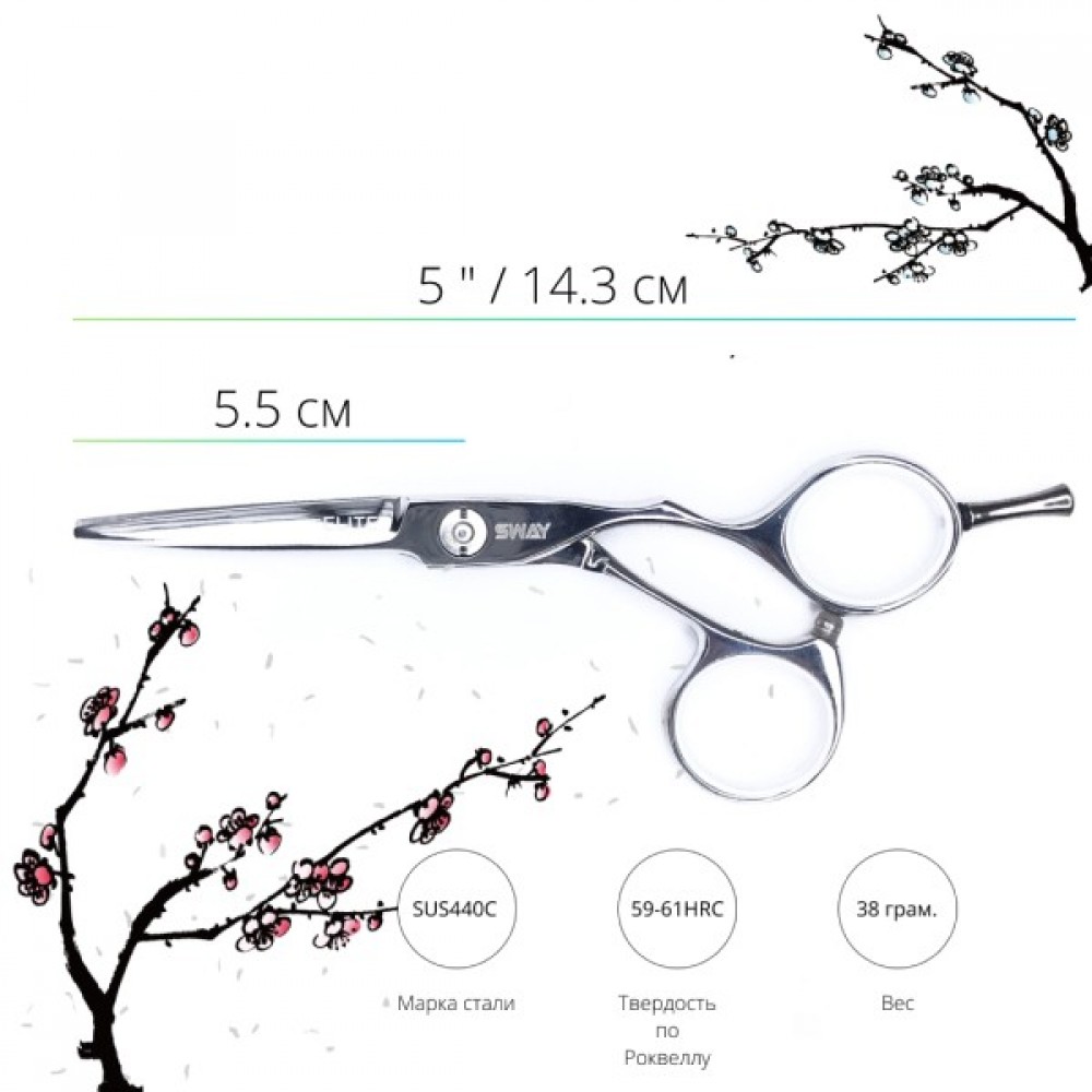 Ножницы серии ELITE от торговой марки SWAY призваны заинтересовать молодых, креативных мастеров! Непревзойденное качество стали, оригинальный дизайн и улучшенная эргономика колец позволят выбрать ножницы даже самым требовательным стилистам! Практически во всех моделях этой серии используется плоская винтовая группа, что в сочетании с хонингованными полотнами обеспечит идеальную плавность и мягкость хода. Конвекционные кромки режущей части полотен и высококачественная нержавеющая сталь обеспечат идеальный срез для любых техник стрижки и сохранят остроту заточки намного дольше, в сравнении с аналогичными ножницами других фирм.