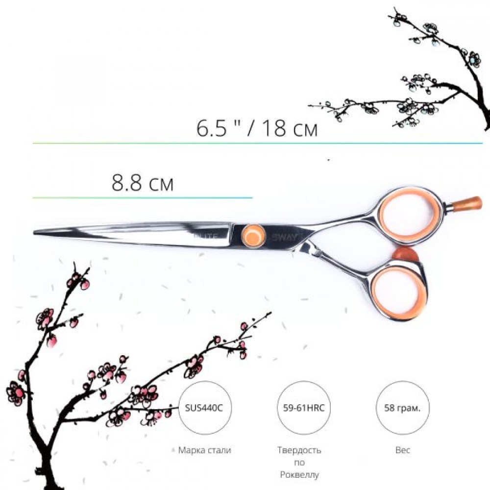 Ножницы серии ELITE от торговой марки SWAY призваны заинтересовать молодых, креативных мастеров! Непревзойденное качество стали, оригинальный дизайн и улучшенная эргономика колец позволят выбрать ножницы даже самым требовательным стилистам! Практически во всех моделях этой серии используется плоская винтовая группа, что в сочетании с хонингованными полотнами обеспечит идеальную плавность и мягкость хода. Конвекционные кромки режущей части полотен и высококачественная нержавеющая сталь обеспечат идеальный срез для любых техник стрижки и сохранят остроту заточки намного дольше, в сравнении с аналогичными ножницами других фирм.
