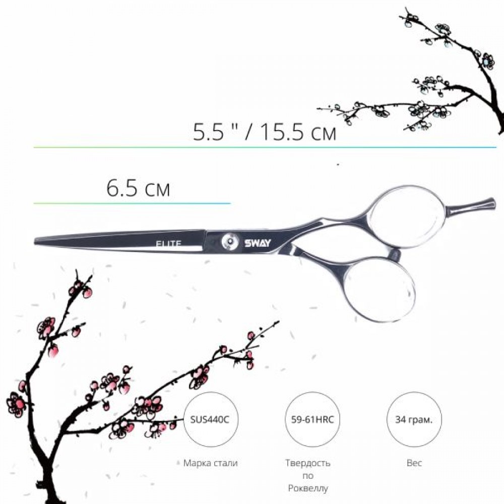 Ножницы серии ELITE от торговой марки SWAY призваны заинтересовать молодых, креативных мастеров! Непревзойденное качество стали, оригинальный дизайн и улучшенная эргономика колец позволят выбрать ножницы даже самым требовательным стилистам! Практически во всех моделях этой серии используется плоская винтовая группа, что в сочетании с хонингованными полотнами обеспечит идеальную плавность и мягкость хода. Конвекционные кромки режущей части полотен и высококачественная нержавеющая сталь обеспечат идеальный срез для любых техник стрижки и сохранят остроту заточки намного дольше, в сравнении с аналогичными ножницами других фирм.