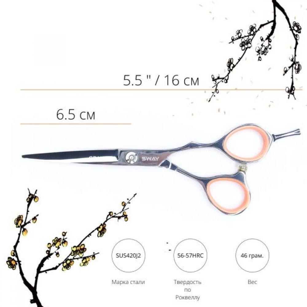 Ножницы серии GRAND от торговой марки SWAY – это классический дизайн с полировкой до зеркального блеска. Высокое качество стали, мягкий ход и отличные показатели среза волос – благодаря этим характеристикам данная серия ножниц идеально подходит как для начинающих мастеров, так и для мастеров с большим опытом и требованиями. Совершенство стиля, достигнутое простотой дизайна, станет отличным помощником в работе. Модель 110 40155 отличается классическим дизайном колец, что придает традиционные ощущения при стрижке, полированной поверхностью и плоской регулируемой винтовой группой. Чрезвычайно мягкий и плавный ход достигается благодаря конвекционным режущим кромкам.