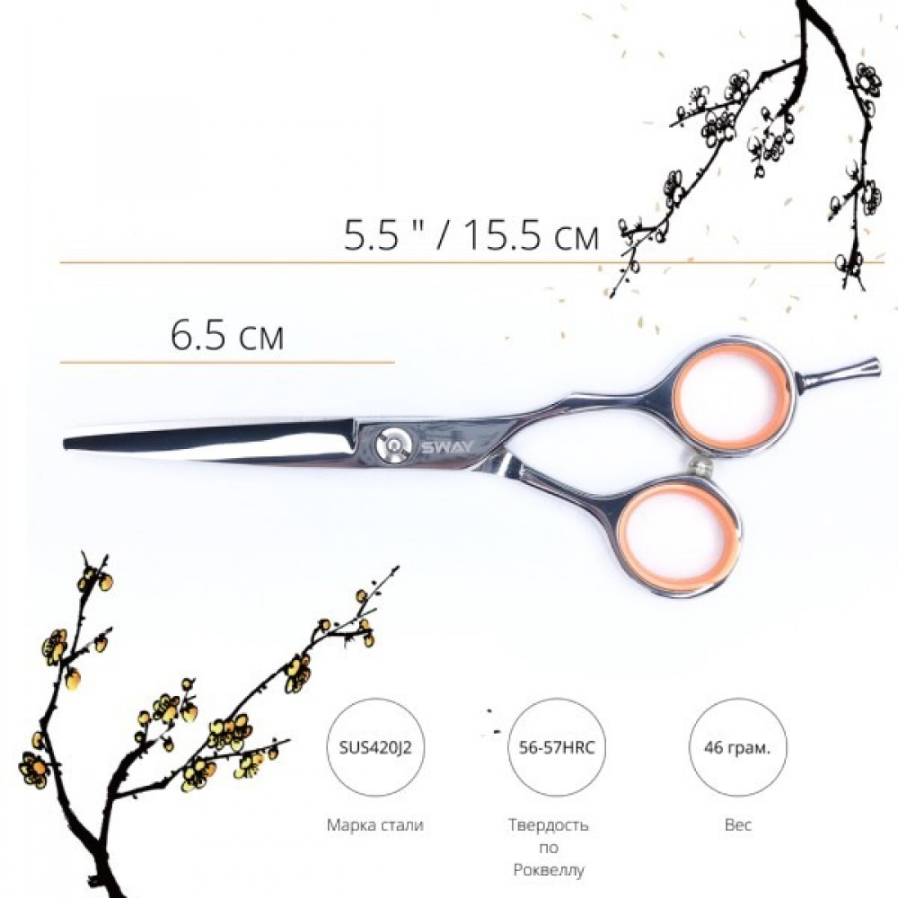 Ножницы серии GRAND от торговой марки SWAY – это классический дизайн с полировкой до зеркального блеска. Высокое качество стали, мягкий ход и отличные показатели среза волос – благодаря этим характеристикам данная серия ножниц идеально подходит как для начинающих мастеров, так и для мастеров с большим опытом и требованиями. Совершенство стиля, достигнутое простотой дизайна, станет отличным помощником в работе. Модель 110 40355 отличается классическим дизайном колец, что придает традиционные ощущения при стрижке, полированной поверхностью и плоской регулируемой винтовой группой. Чрезвычайно мягкий и плавный ход достигается благодаря конвекционным режущим кромкам.