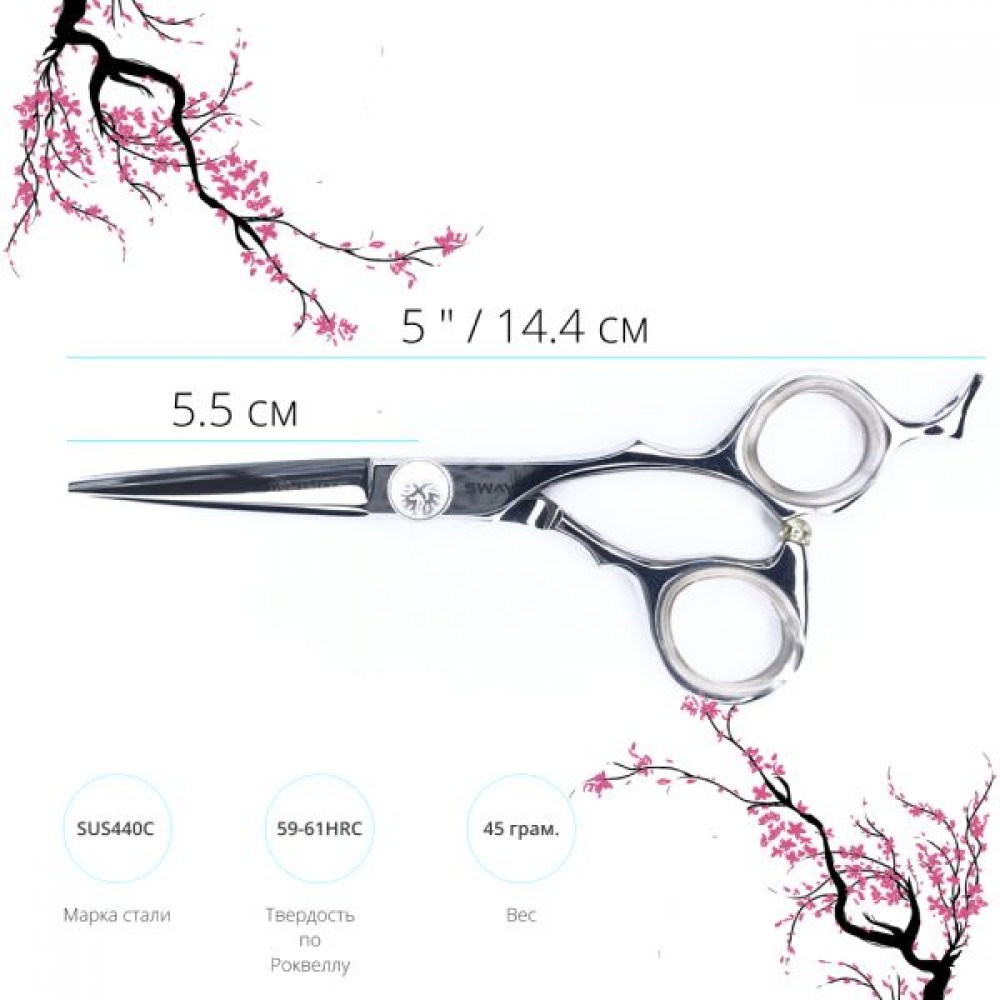 Во всех ножницах серии "SWAY INFINITE" используется нержавеющая сталь марки SUS 440C (С-кобальт). Примечательна она тем что, по своей структуре сталь марки SUS440 имеет высокую твердость, а также устойчивость к коррозии; добавления кобальта (SUS440С) придает великолепные режущие свойства и повышает стойкость режущих кромок к износу.