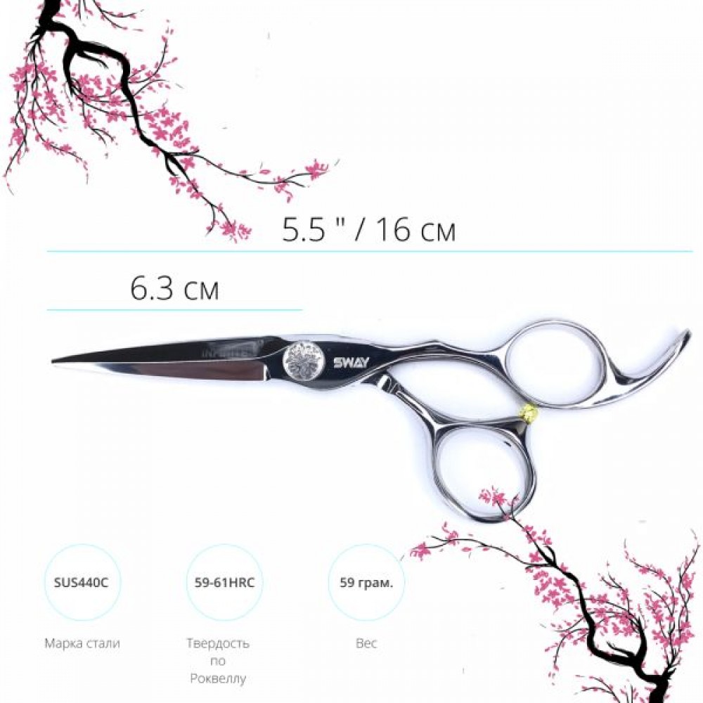 Во всех ножницах серии "SWAY INFINITE" используется нержавеющая сталь марки SUS 440C (С-кобальт). Примечательна она тем что, по своей структуре сталь марки SUS440 имеет высокую твердость, а также устойчивость к коррозии; добавления кобальта (SUS440С) придает великолепные режущие свойства и повышает стойкость режущих кромок к износу.