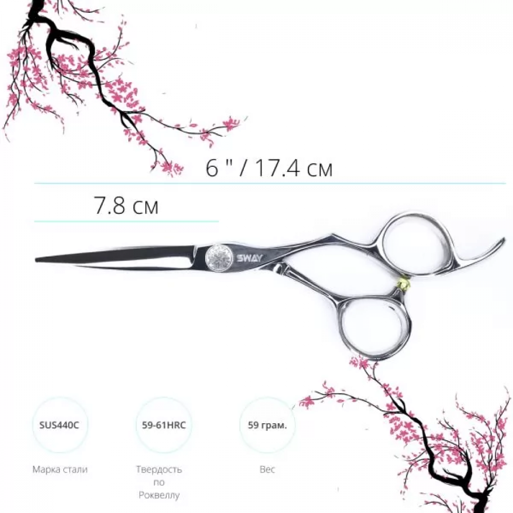 Во всех ножницах серии "SWAY INFINITE" используется нержавеющая сталь марки SUS 440C (С-кобальт). Примечательна она тем что, по своей структуре сталь марки SUS440 имеет высокую твердость, а также устойчивость к коррозии; добавления кобальта (SUS440С) придает великолепные режущие свойства и повышает стойкость режущих кромок к износу.