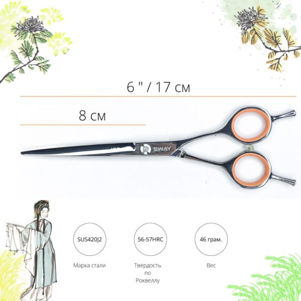 Ножницы серии JOB от торговой марки Sway – традиционные ощущения при стрижке благодаря классическому дизайну. Регулируемая винтовая группа и полировка до зеркального блеска обеспечат мягкий и плавный ход. Данная серия ножниц идеально подойдет для начинающих мастеров. Модель 110 50360 придаст традиционные ощущения при стрижке благодаря классическому расположению колец, а упоры под пальцы снимут нагрузку с кистевых суставов. Благодаря регулируемой винтовой группе ножницы имеют мягкий, плавный ход, а конвекционные кромки позволят сохранить заточку значительно дольше, в сравнении с аналогами других фирм.