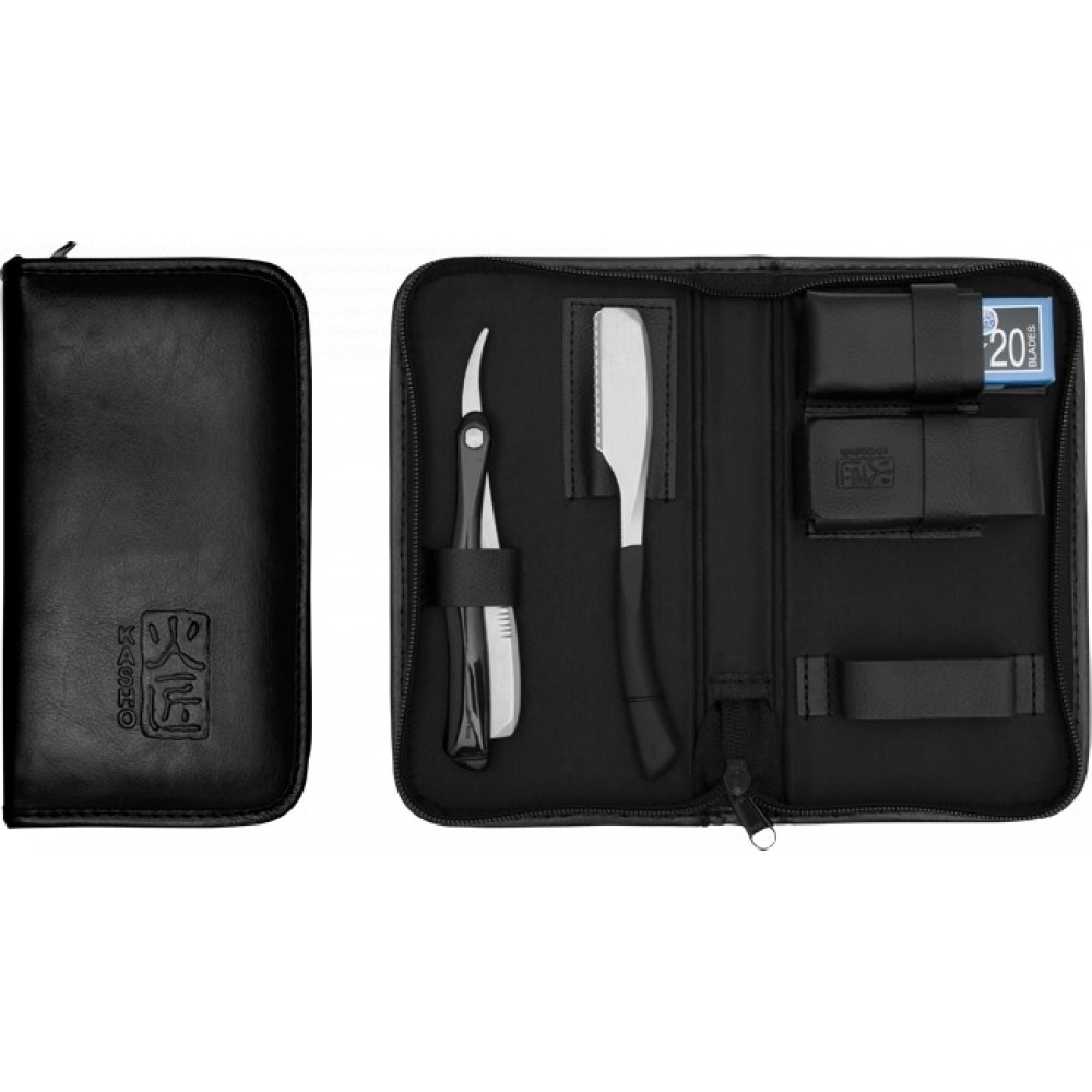 Футляр для бритвы Kasho K-13 - это оригинальный японский аксессуар, который создал для хранения бритв данной марки. Изготавливается из искусственной кожи, имеет удобную встроенную молнию. Состоит из двух отделений, в которые удобно помещаются бритвы и лезвия.