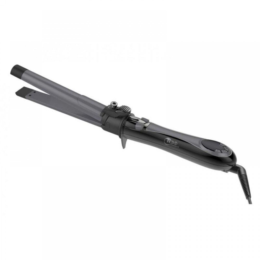 Дизайн новинки выполнен в традиционном для серии Automatico стиле. Новинка имеет отличную эргономику, благодаря которой работа с устройством будет легкой и непринужденной. Сбалансированный вес и удобная ручка избавят от лишних нагрузок на кисть и запястье. Все что Вам потребуется – это нажимать кнопки и фиксировать локон – остальное стайлер все сделает сам. Рабочая часть стайлера (ствол) имеет конусную форму с небольшой разницей в диаметре – 30 мм у основы и 24 мм в конце. Кнопка зажима является мультифункциональной и служит для управления зажимом и щипцами, фактически переключая работу прибора из плойки в утюжок и обратно. Никаких сложностей в работе это не займет. Полезная длина рабочей части составляет 145 мм, что позволяет работать с волосами различного типа и объема. Рабочая поверхность и элементы нагрева имеют керамико-турмалиновое покрытие, которое обладает невероятным скольжением и устойчиво к высоким температурам.
