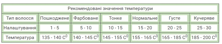 Как уже говорилось, в модели применяется механический терморегулятор, который позволяет регулировать температуру в диапазоне 135 – 200 C0. Сам регулятор выполнен в форме диска, расположенного сбоку на ручке и имеет специальную шкалу для установки заданной температуры. Всего в модели реализовано 30 температурных режимов. Разобраться с установкой точной температуры легко – для этого смотрите рекомендуемые настройки: