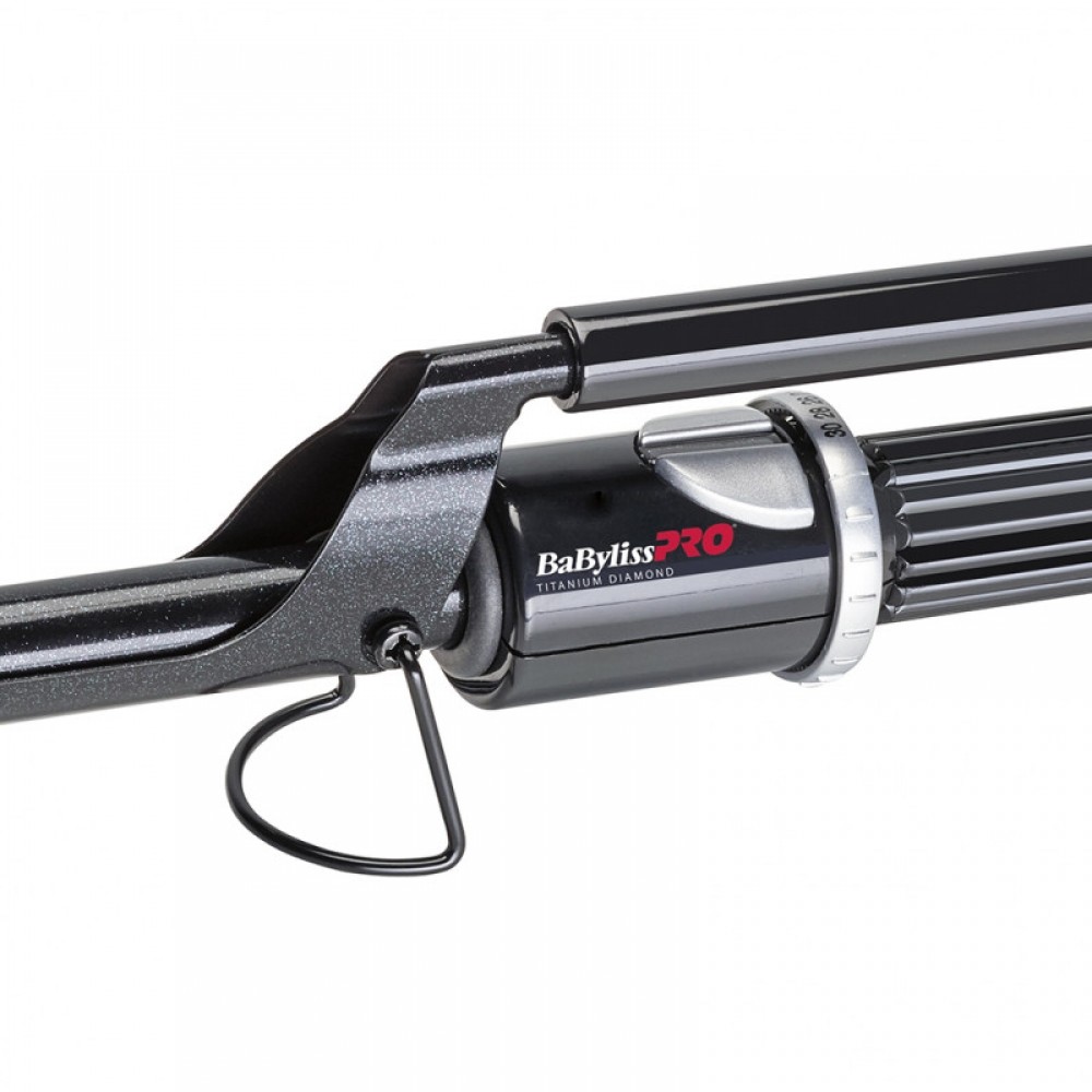 Ручка плойки BAB 2241 TDE состоит из двух частей. Ее уникальная конструкция позволит Вам работать практически без напряжения. Отметим, что в модели используется зажим обратного типа. Завивка волос выполняется одной рукой. Верхняя часть ручки металлическая и подвижная. Другая часть ручки вращается вместе с зажимом и рабочей частью плойки. Таким образом, Вы фиксируете прядь волос зажимом и накручиваете волосы на плойку, проворачивая ее в руке. Основная ручка с ребрами всегда упирается в руку, а пальцами вы прокручиваете плойку благодаря верхней части ручки, которая выполнена трубкой, которая так же вращается вокруг своей оси. При необходимости эту функцию можно отключить.