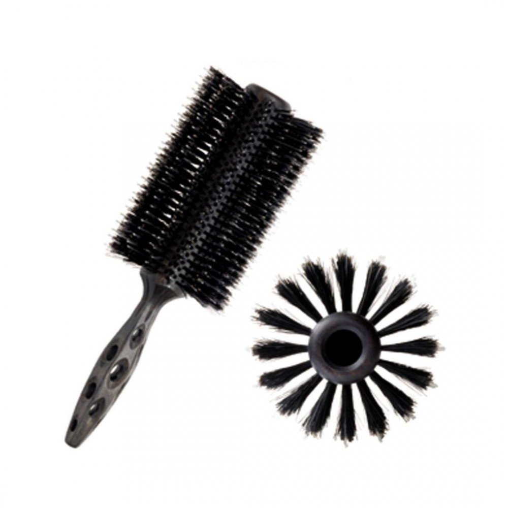 Натуральная щетина, черного кабана + нейлоновые вставки по бокам, 384 отверстия, 25 рядов и 16 линий, деревянная ручка, анти-статик, облегченный.