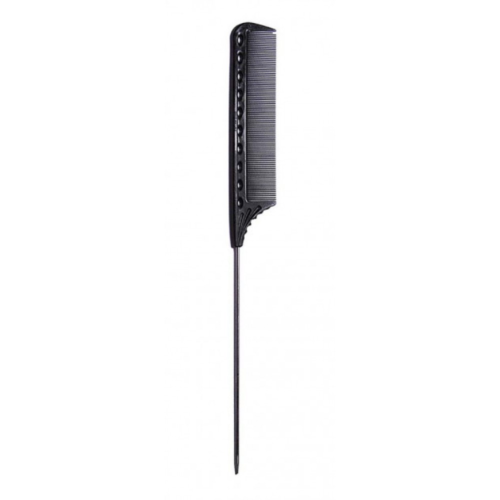 Гибкая расчёска с металлическим хвостиком Y.S.Park 116. Для базовой техники работы стрижки, выделения прядей, окраски и химзавивки. Длина рабочей части расчёски совпадает с длиной стандартной пластиковой бигуди для химзавивки («коклюшки»). Частота зубчиков плавно увеличивается от центра к краю расчёски.