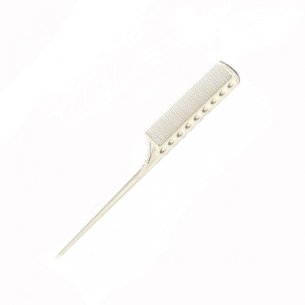 Модель YS-107 white расческа с пластиковым хвостом, для прочесывания, подкручивания, разделения прядей, начеса, причесок. С утолщенным хвостом и усиленным профилем. Длина панели с зубцами равна длине бигуди(коклюшке), которые используются при химической завивке. Прочесывая прядь, вы сразу отделяете нужное количество волос для накручивания. Идеально подходит для новичков.